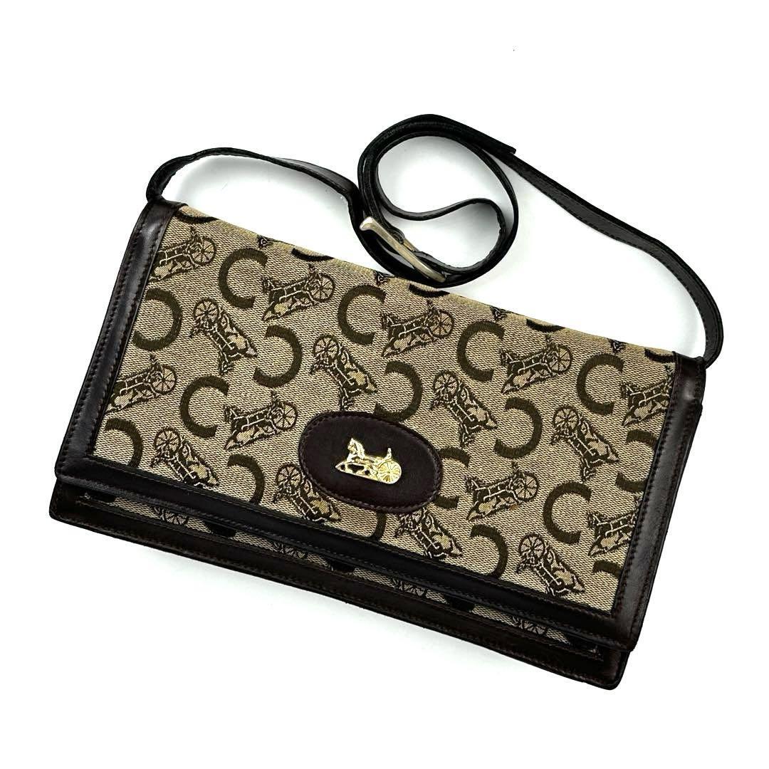- 【人気】CELINE セリーヌ ショルダーバッグ 2way 馬車金具 Cサルキー マカダム 総柄 レザー キャンバス 焦げ茶色 ダークブラウン ベージュ