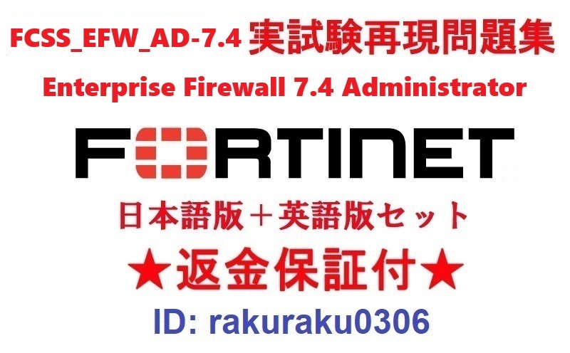 - FORTINET FCSS_EFW_AD-7.4 Enterprise Firewall 7.4 Administrator【11月日本語版+英語版】実試験再現問題集★返金保証★追加料金なし★②