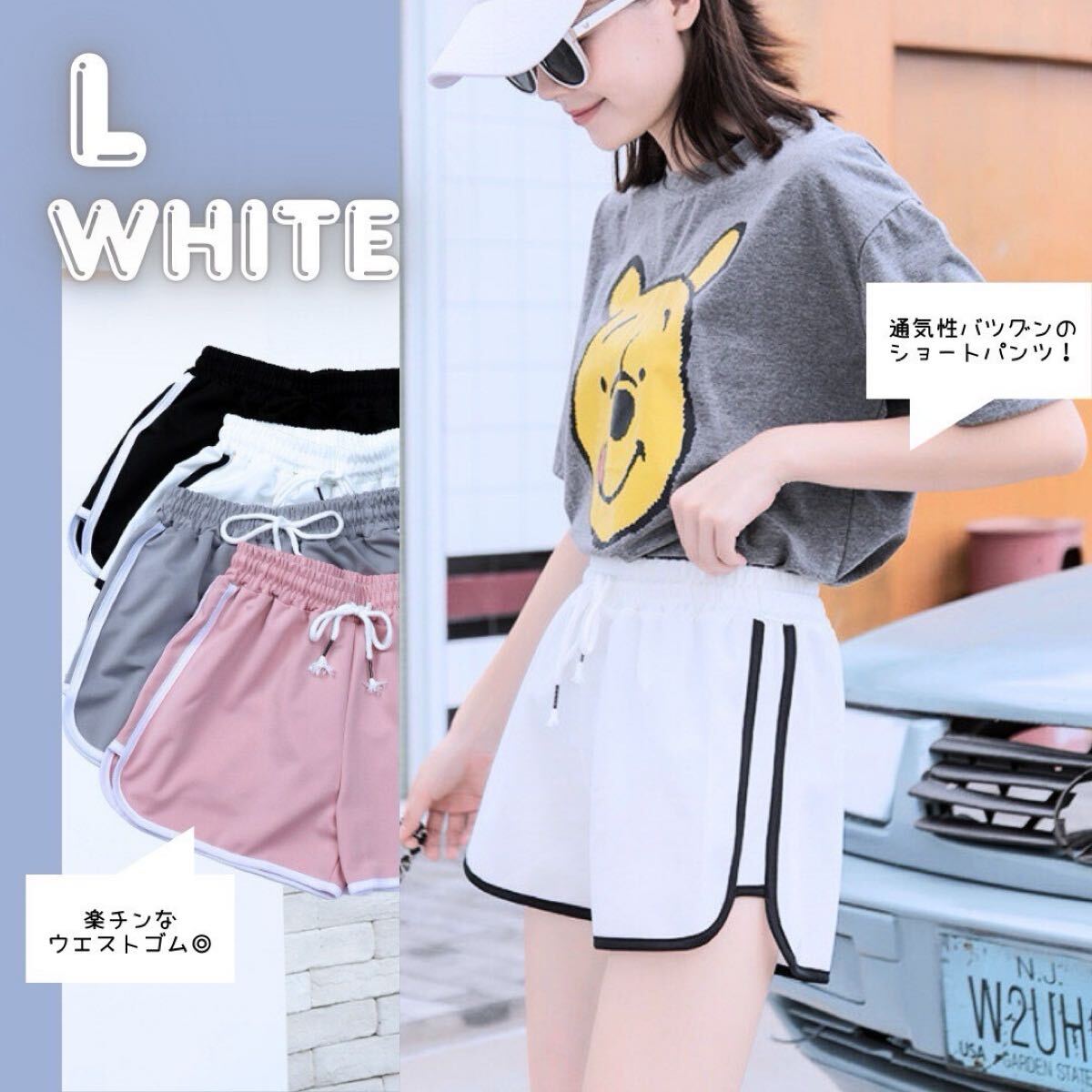 - レディース ショートパンツ 短パン ルームパンツ スポーツ ヨガ 部屋着 ホワイト 白 Lサイズ L