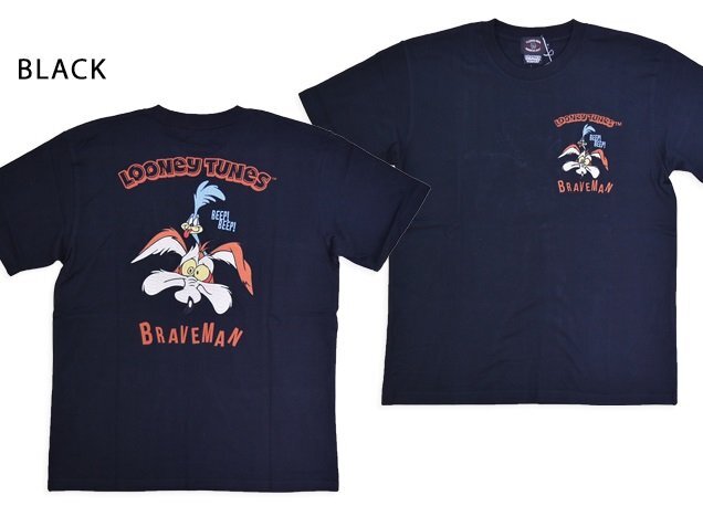 > BR×LOONEYコラボ 天竺半袖Tシャツ◆The BRAVE-MAN ブラック Lサイズ LTB-2501 ブレイブマン コヨーテ ロードランナー 刺繍