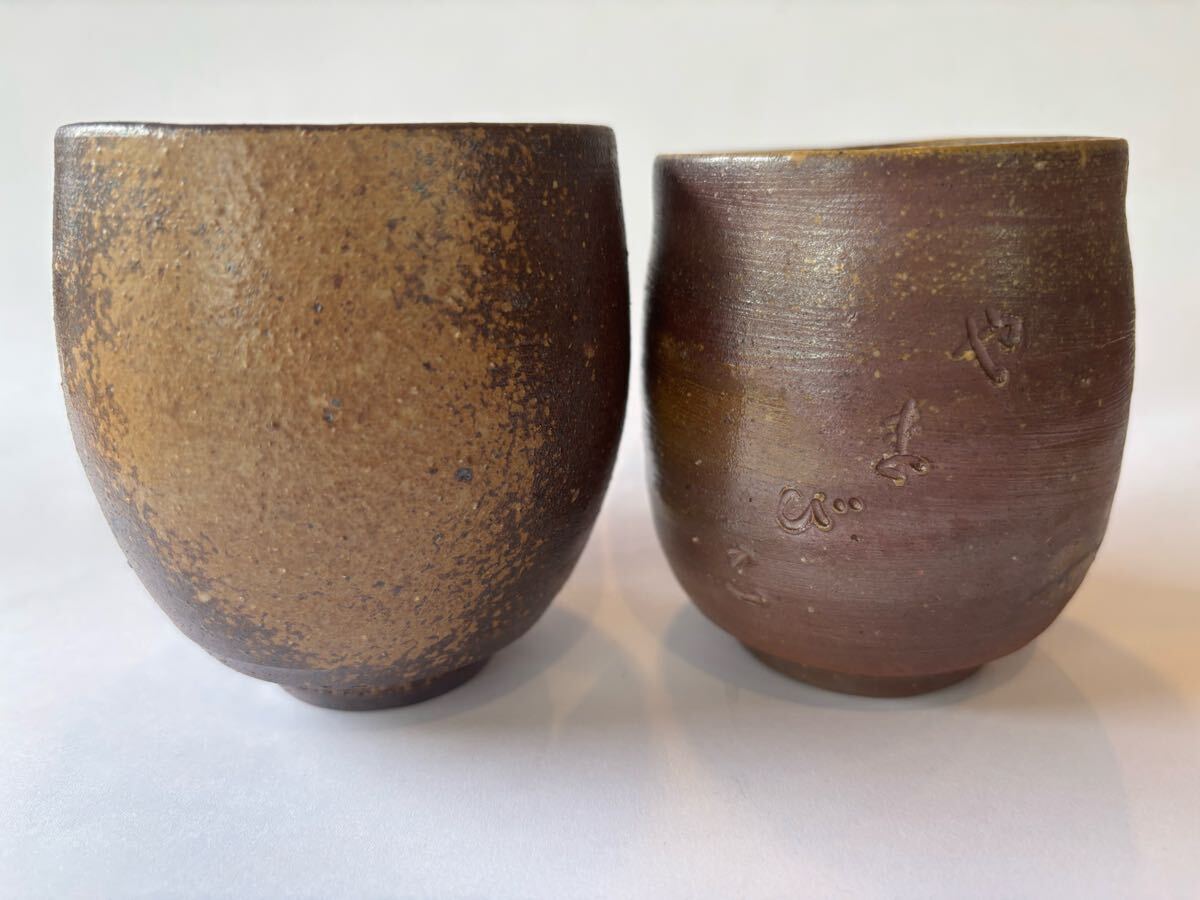 - 備前焼 ぐい呑 ②湯呑作家分かりません分かる方落札お願い致します。