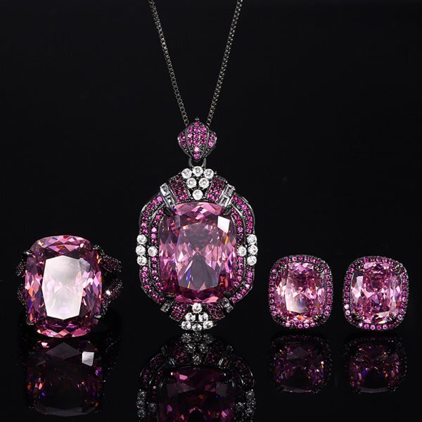 > 女性のためのピンククォーツジュエリーセット、オークション終了4日前までに最初に入札すると開始価格で購入できます_Kn9dc
