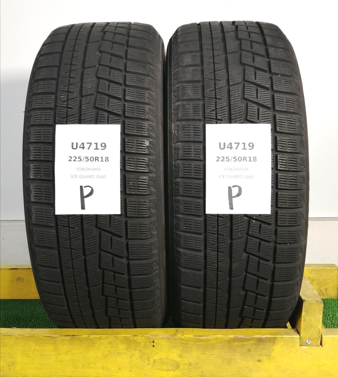 > 225/50R18 95Q Yokohama iceGUARD iG60 中古 スタッドレスタイヤ 2本セット 2019年製 ※本州送料無料 225/50/18 冬タイヤ U4719.P