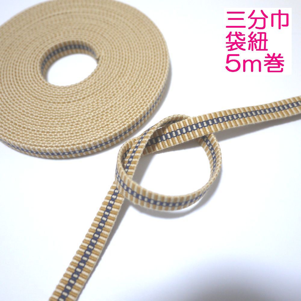 - 匿名発送★(03袋-23-5)袋紐・三分紐 5m巻 国内産 木綿 真田紐 綿100% ベージュ×からし色 Samurai ribbon(Sanadahimo)