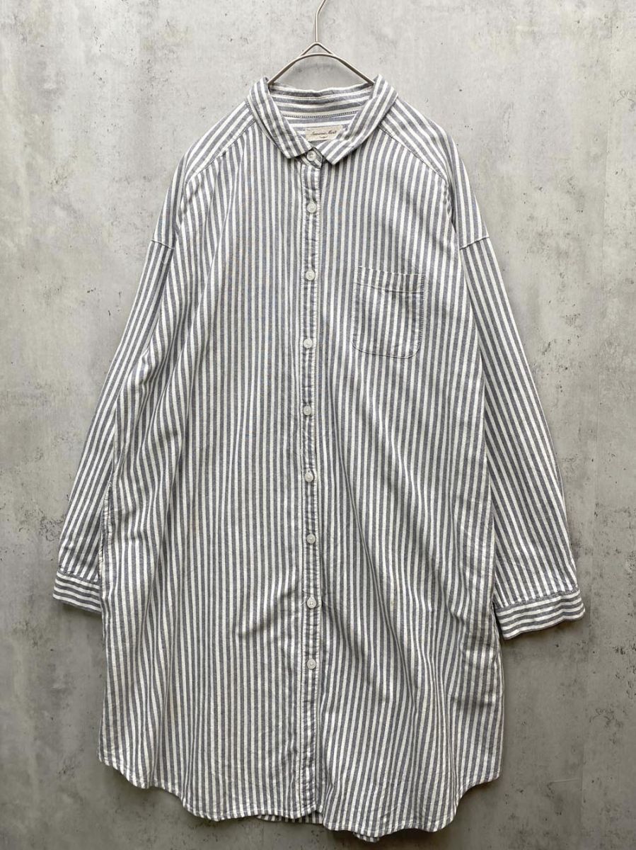 - ゆうパケットOK Samansa Mos2 サマンサ モスモス シャツ ワンピース sizeF/白xグレー ■◇
