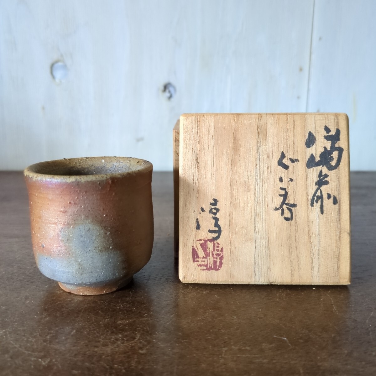 - 備前焼 人間国宝 伊勢崎 淳 ぐい呑 共箱 窯変 酒器 酒呑