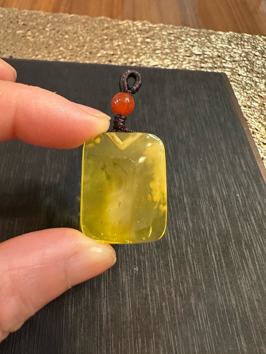 - Q-003 天然アンバー 本琥珀 蜜蝋 無事札 ペンダント ネックレス 天然保証