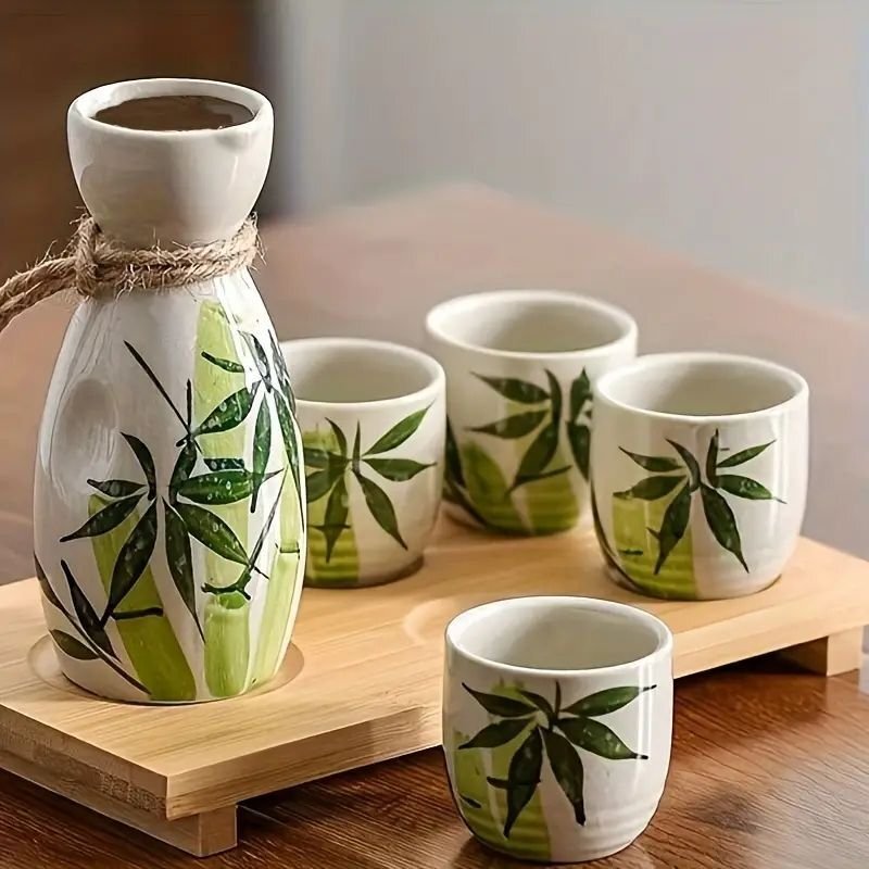 > 竹模様陶器日本酒セット - 徳利とおちょこセット、涼しげな夏の酒器、家庭用キッチン用品&ギフト #54