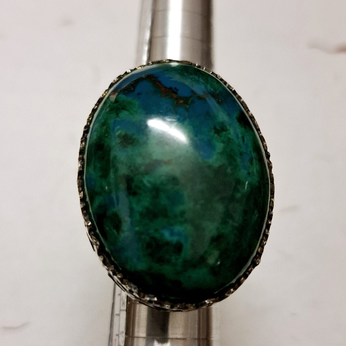 - マラカイト925刻印 彫金 約21.37g トップ約3.5cm×2.4cm サイズ約9~10号 ボリュームあり。