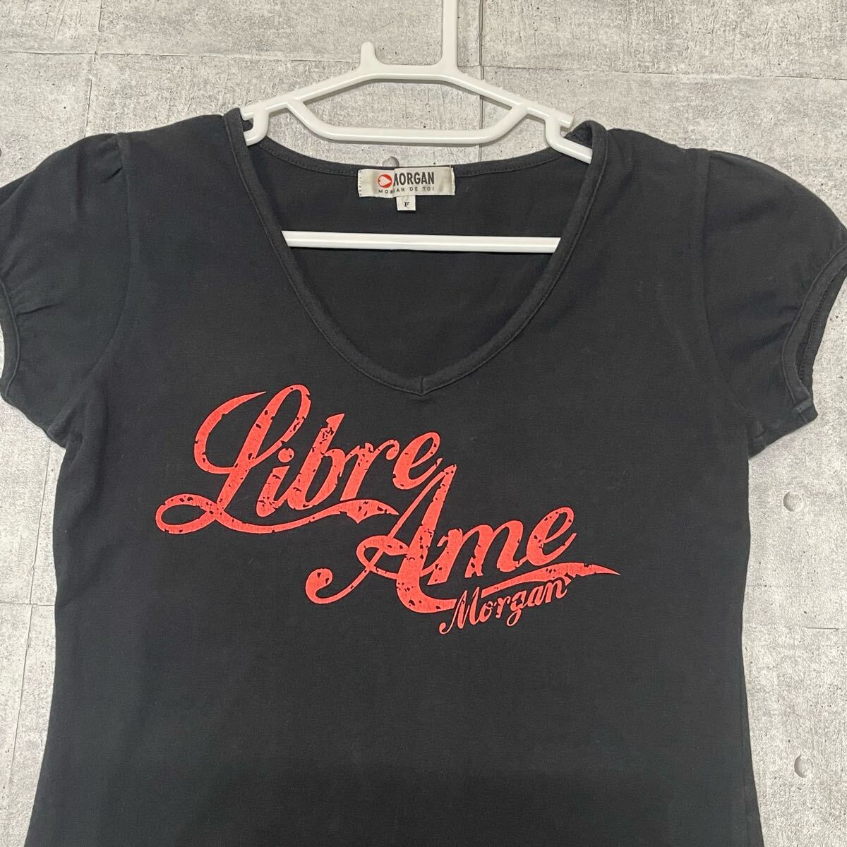 > 00s Y2K MORGAN DE TOI Vネック ボディフィット Tシャツ 00年代 モルガンドゥトワ ブラック 黒 フリーサイズ ストレッチ 早5034
