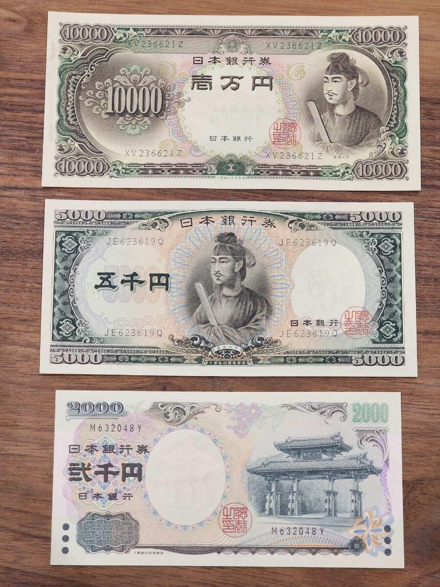- 聖徳太子 1万円札 5千円札 2000円札 3枚セット 額面17000円分 日本銀行 旧紙幣古札 古銭 日本紙幣 一万円札 五千円札 二千円札