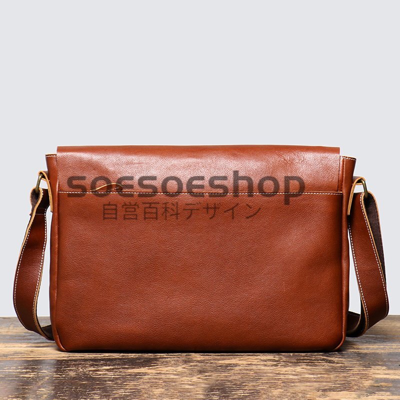 - 本革 メンズ 斜め掛けレザーショルダーバッグA4 15インチPC対応 ビジネス 男性メッセンジャーバッグ カジュアル 通勤大容量茶色がかった赤