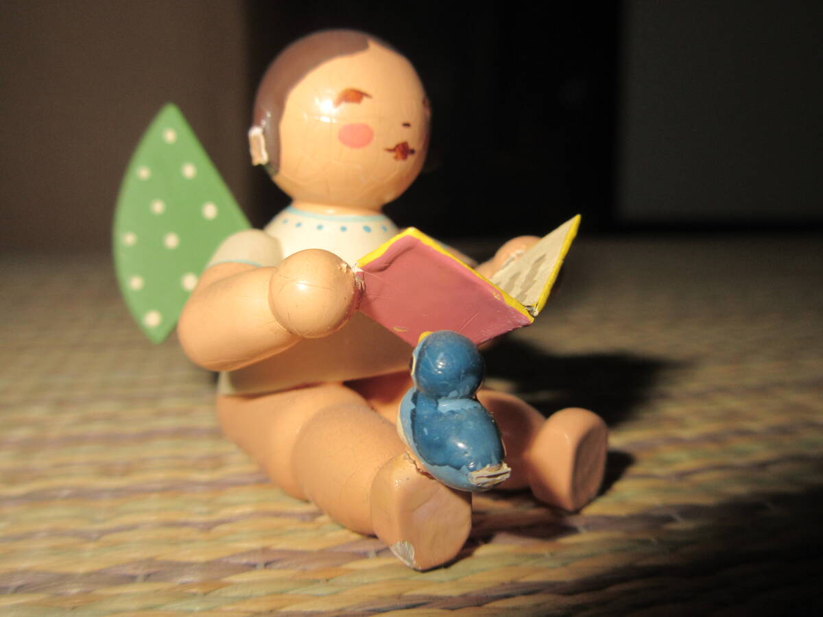 - R070410 断捨離 処分「WENDT&KUHN 木製人形 ソングブックを持つ天使と小鳥」保管品 USED