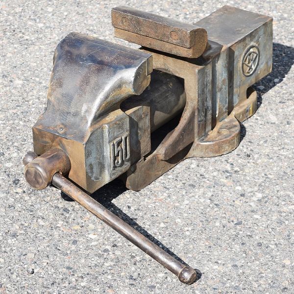 - 【新潟発】ナベヤ JISバイスA型 150 JIS-A150 リードバイス 万力 クランプ 口開 約160mm 質量 約36kg 丸胴型 工具 中古 北陸