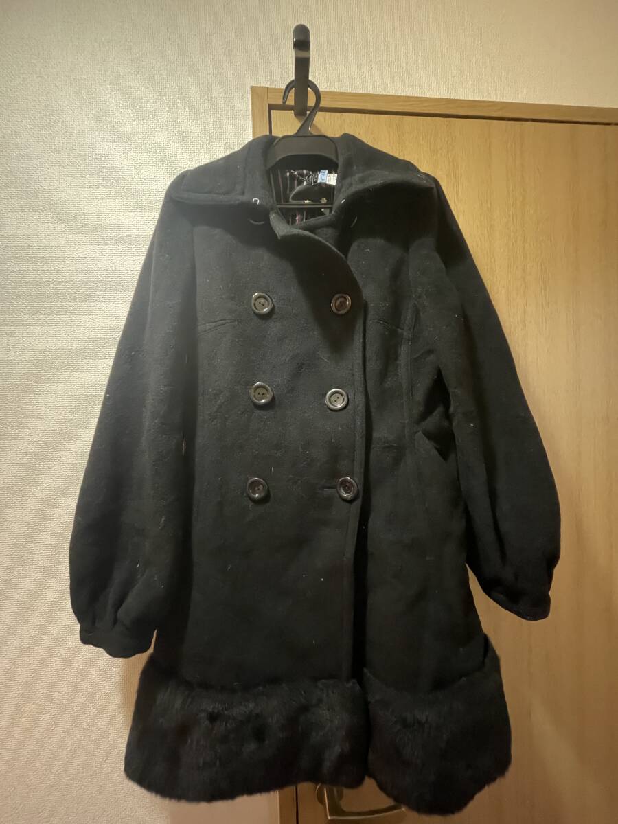 - ローズブリットピーコート裾ファー付ワンピースコートブラック系黒系