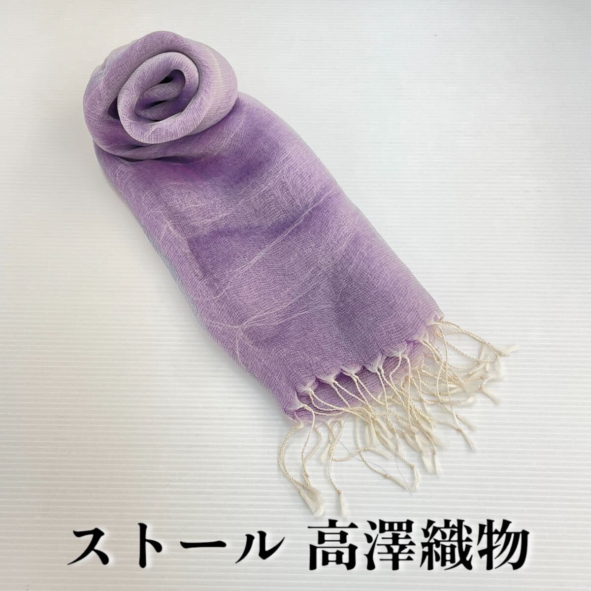 > 【ストール 高澤織物】未使用 シルク ? 絹 ? 春夏 スカーフ ショール 紫 ラベンダー色 肩掛け 膝かけ 国産 日本製 防寒 #0263-696Z8