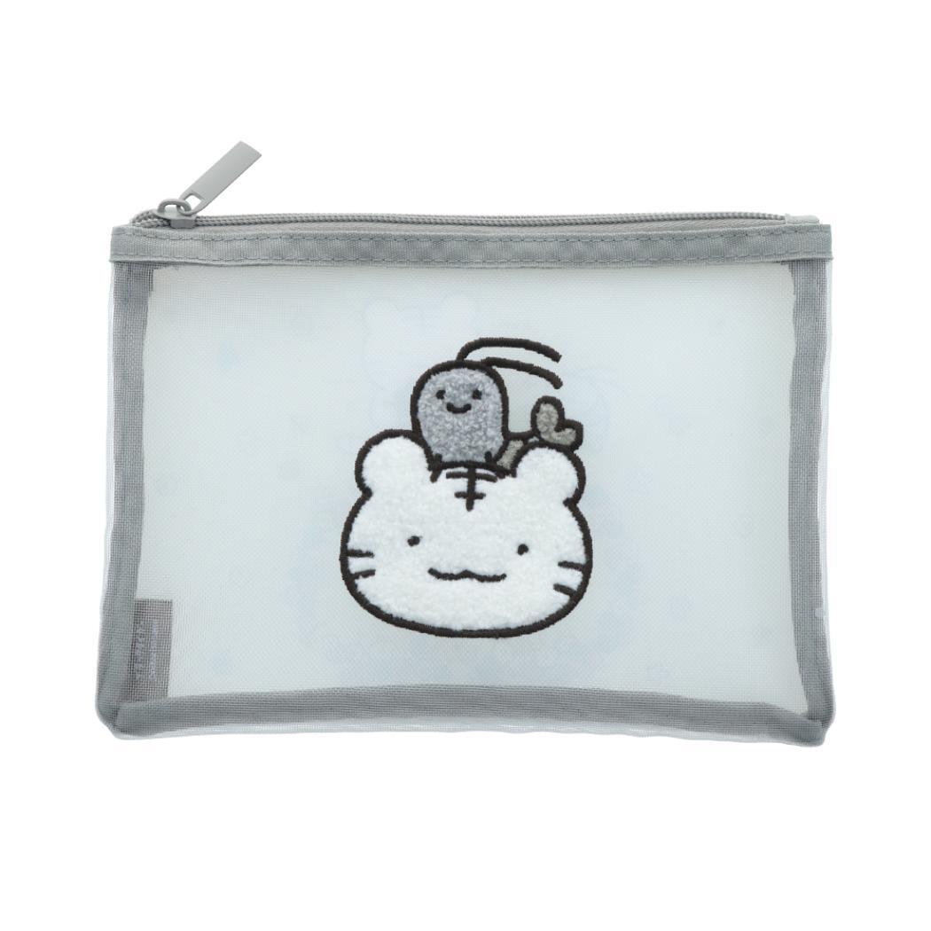 - ホワイトタイガーとブラックタイガー 平ポーチ サガラ刺繍メッシュポーチ WB サンスター文具 小物入れ コスメポーチ キャラクター