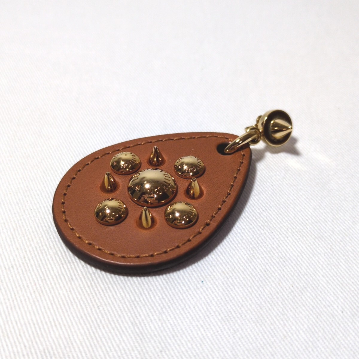 - 片耳のみ 良好 良品 VUITTON ヴィトン 茶系×ゴールド レザー スタッズ ピアス