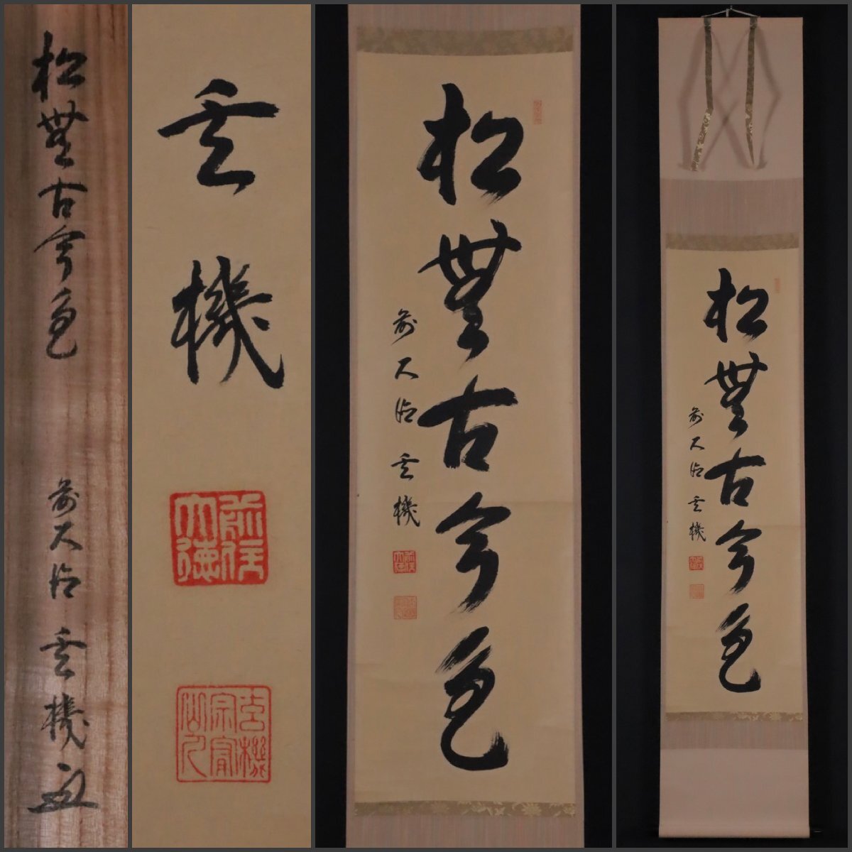 - 【模写】吉】12290 松涛玄機 書「松無古今色」 共箱 方谷浩明師事 崇福寺 妙湛寺 臨済宗 大徳寺 松濤玄機 仏教 茶掛け 茶道具 掛軸 掛け軸