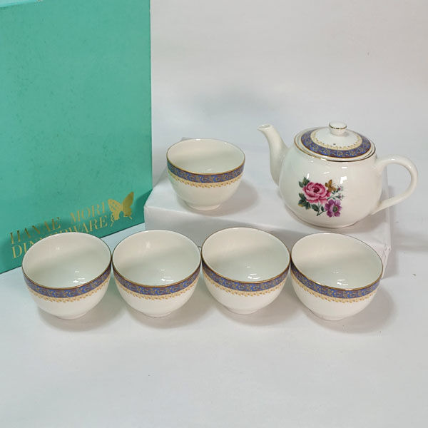 - ★ ハナエモリ 洋食器 森英恵 蝶と薔薇のティーセット(ポット・カップ5) (0220521035)