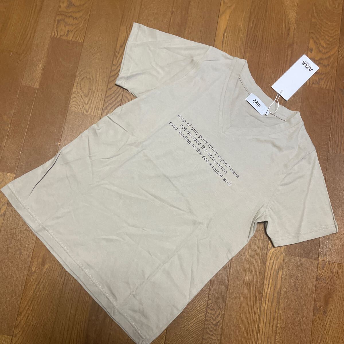 - 新品・未使用♪AZUL by moussy≪アズールバイマウジー≫♪Vネックコットン半袖Teeシャツ♪Mサイズ♪ベージュ♪