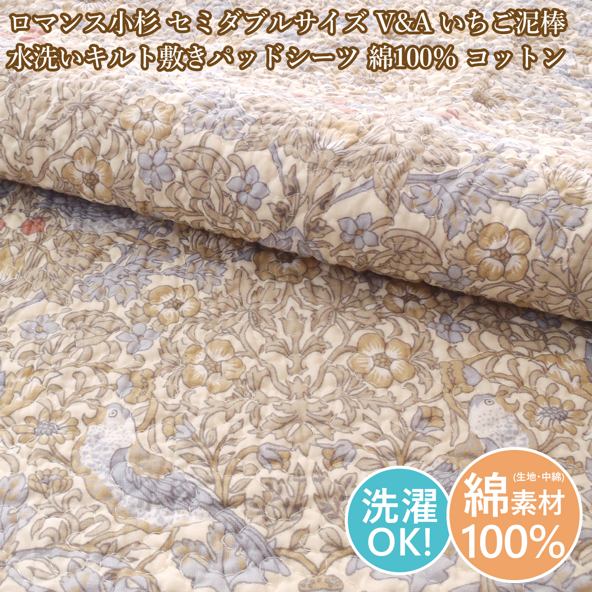 - ロマンス小杉 セミダブル 敷パッド V&A いちご泥棒 水洗いキルト敷きパッドシーツ 綿100% コットン セミダブルサイズ