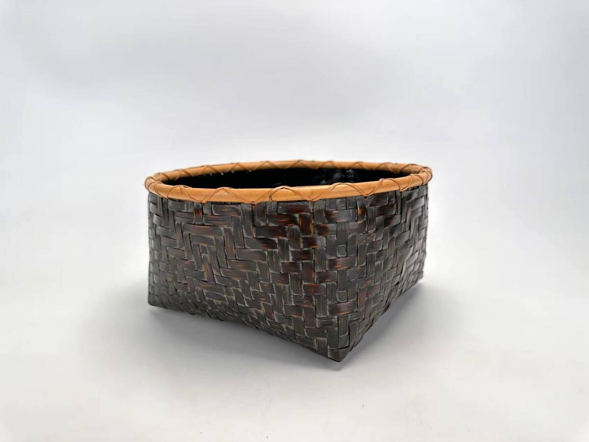 - F83★茶道具 利休形 風炉用 竹編炭斗 かご 竹籠 炭籠 竹工芸 竹木工 茶道 昭和レトロ 現状品