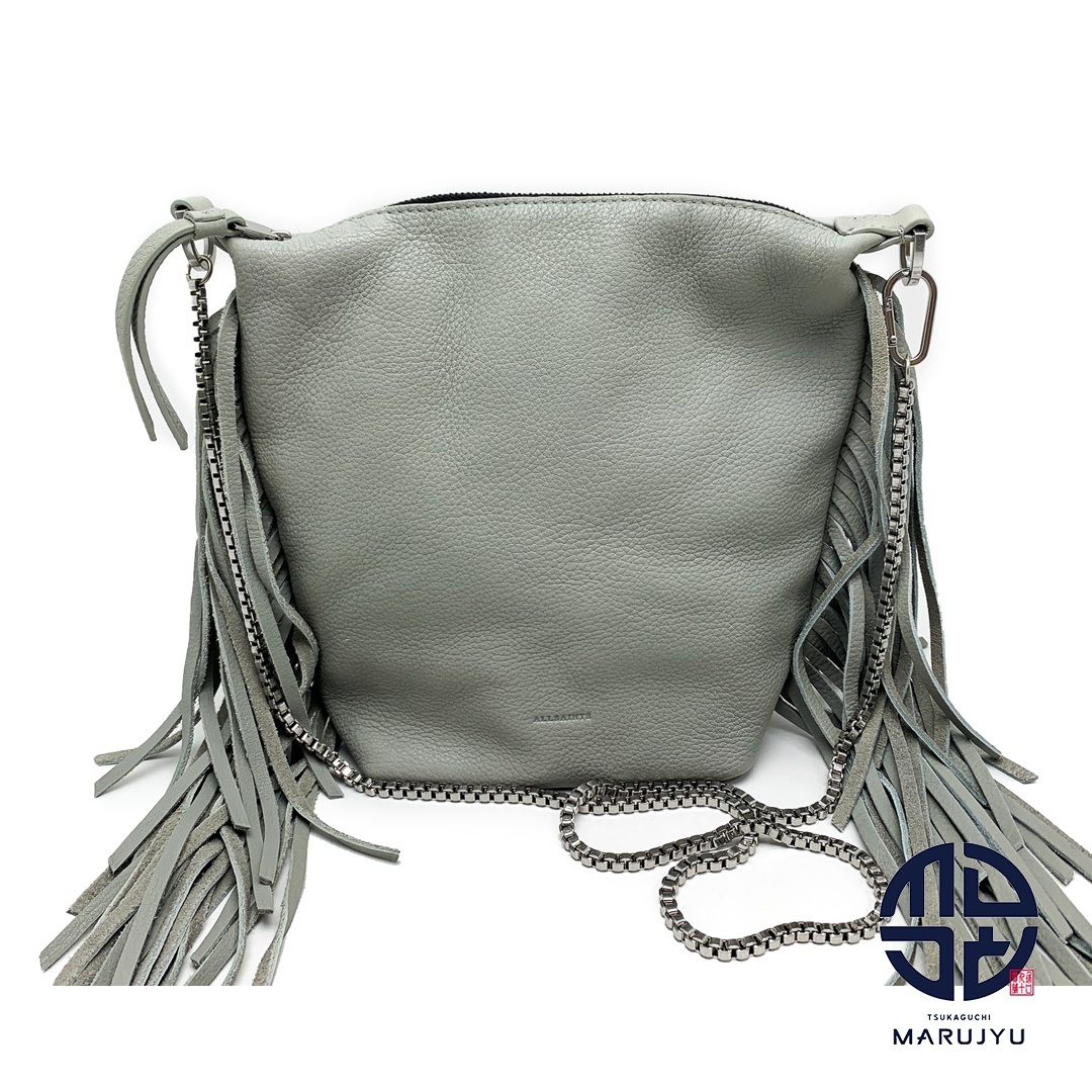 > ALLSAINTS オールセインツ ライトグレー系 フリンジ レザー クロスボディバッグ チェーンショルダーバッグ バック 鞄 カバン