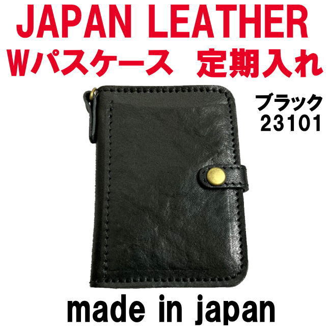 - ブラック コルドレザー 本革 23101 Wパスケース 定期入れ JAPAN LEATHER 日本製