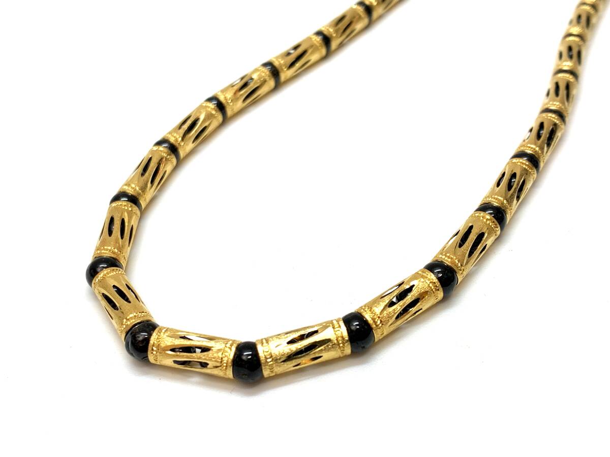 - 【送料無料】K18 18金 イエロー ゴールド ネックレス 首輪 40cm ブラック トルマリン 色石 宝石 ボール ラウンド デザイン 店舗受取り可