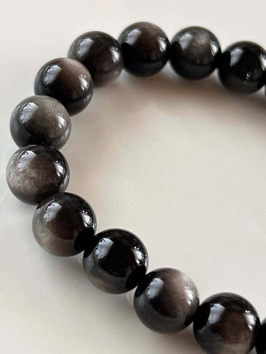 - おすすめ!!天然石★シルバー オブシディアン ブレスレット★8mm 16cm