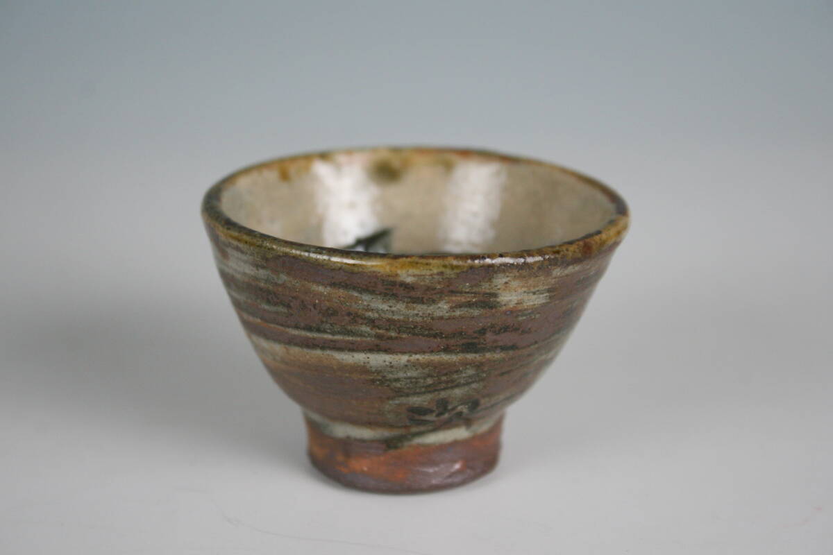 - 壺屋焼 人間国宝 金城次郎 作 外刷毛目魚文ぐい呑 (6)