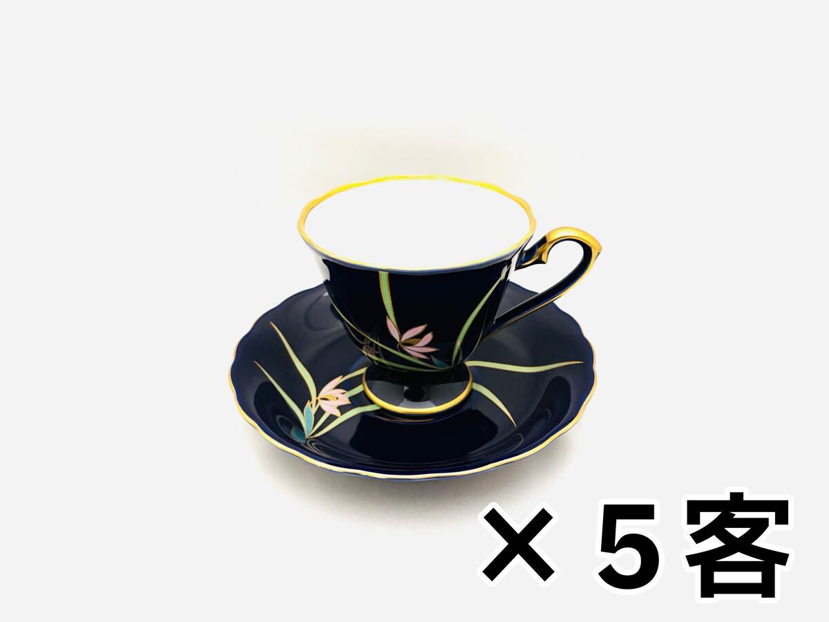 - 【未使用品】香蘭社 ルリ蘭 カップ&ソーサー 5客セット コーヒーカップ ティーカップ