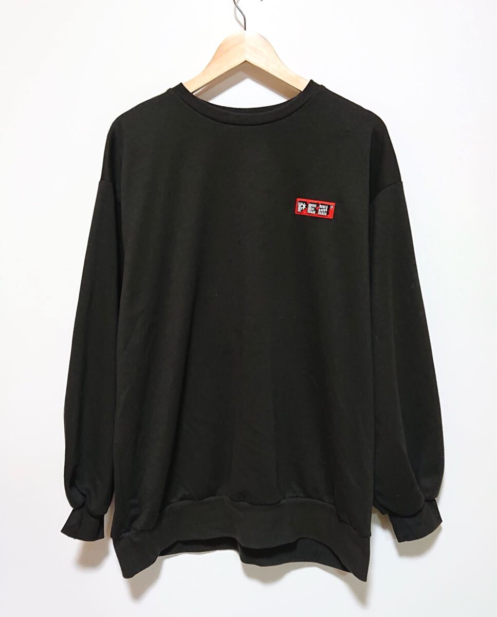 > h2551gg PEZ(ペッツ)サイズL スウェット トレーナー ブラック レディース ペッツバックプリント ゆったりサイズ オーバーサイズ 古着