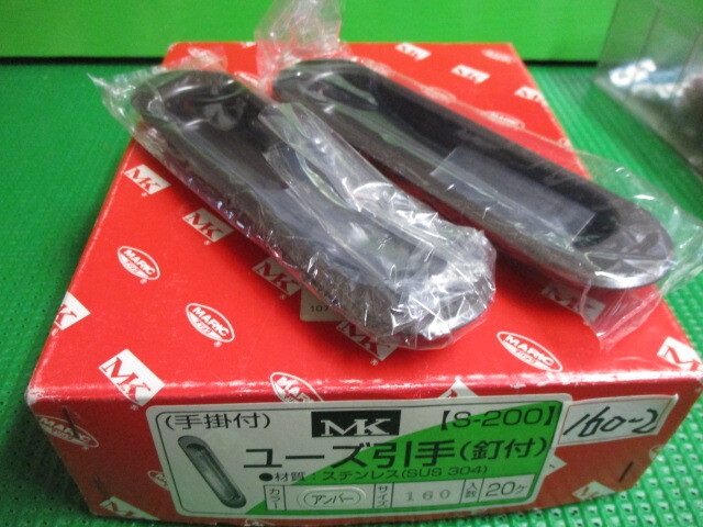- 引手 ユーズ引手 ステンレス製 木ネジ付 MK製 S-200 サイズ160ミリ 色 アンバー 4ケで¥2000