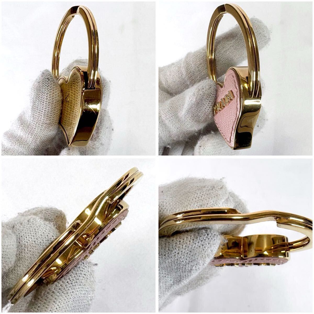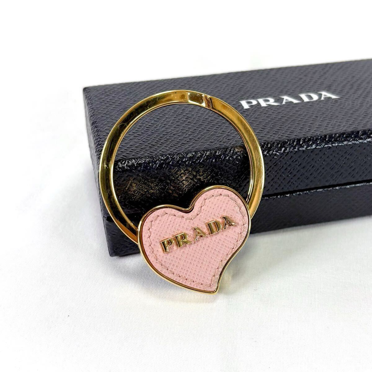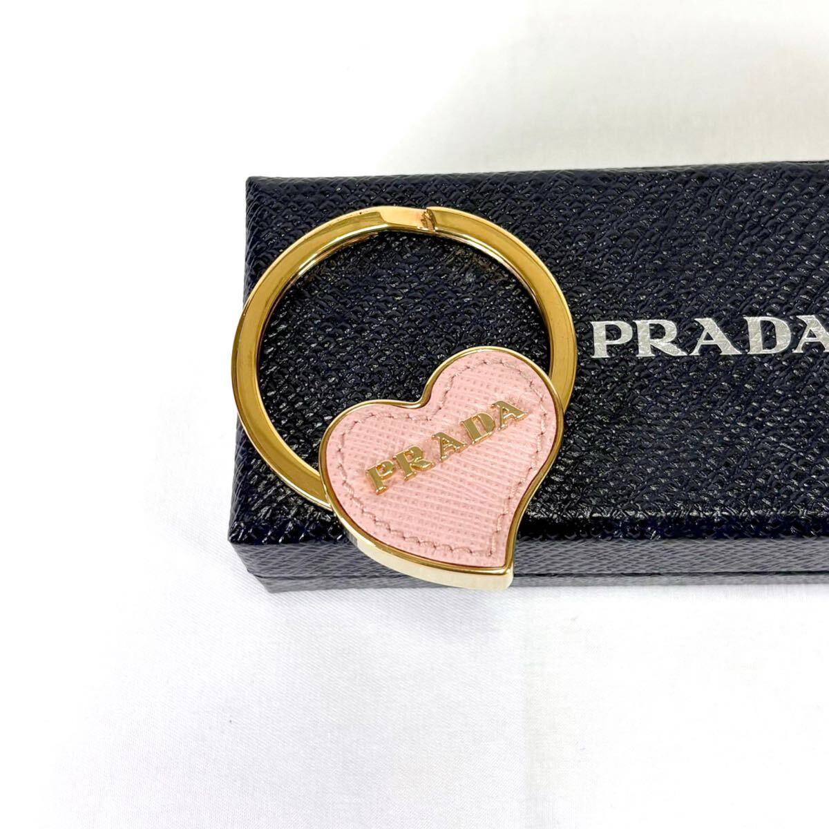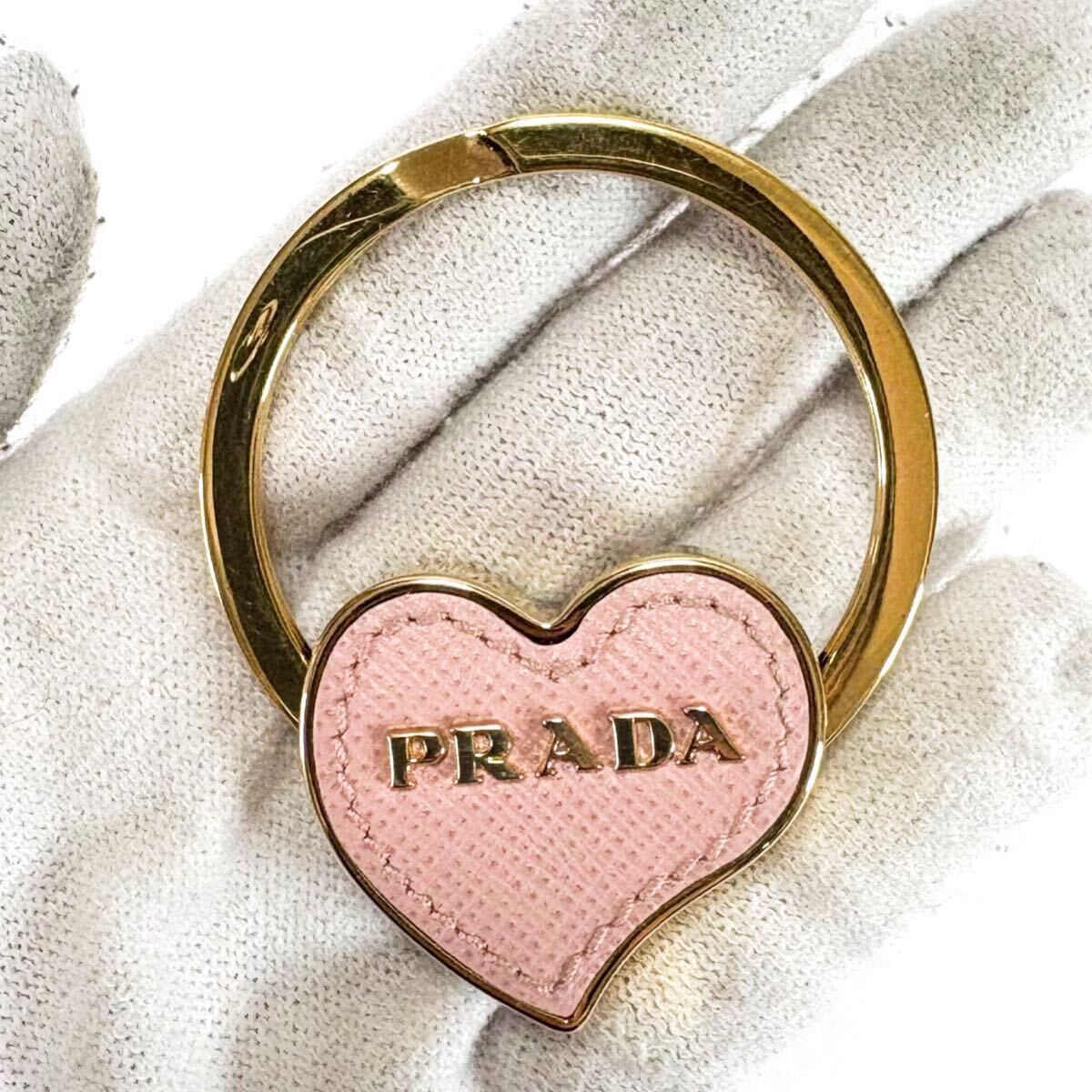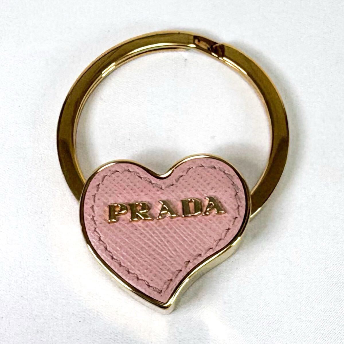 - PRADA プラダ キーリング ハートモチーフ ピンク サフィアーノレザー ゴールド金具 バッグチャーム キーホルダー