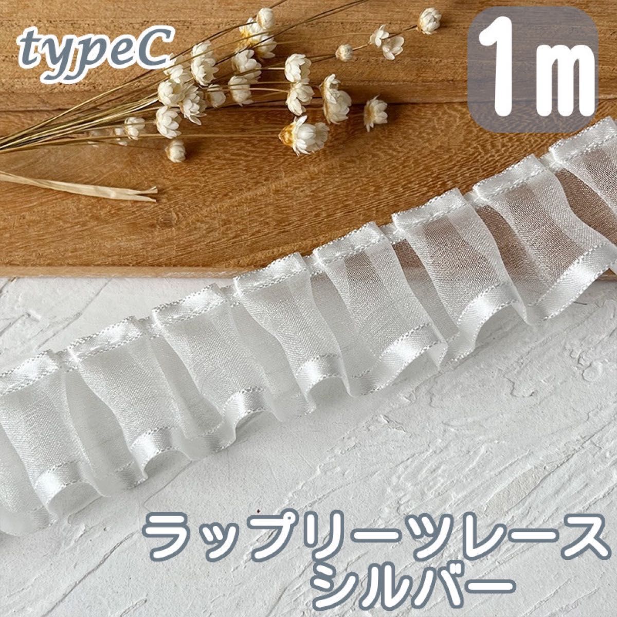 - C プリーツレース シルバー 光沢 幅広 ☆手芸☆材料 1m フリル DIY アンティーク フランス ヴィンテージ