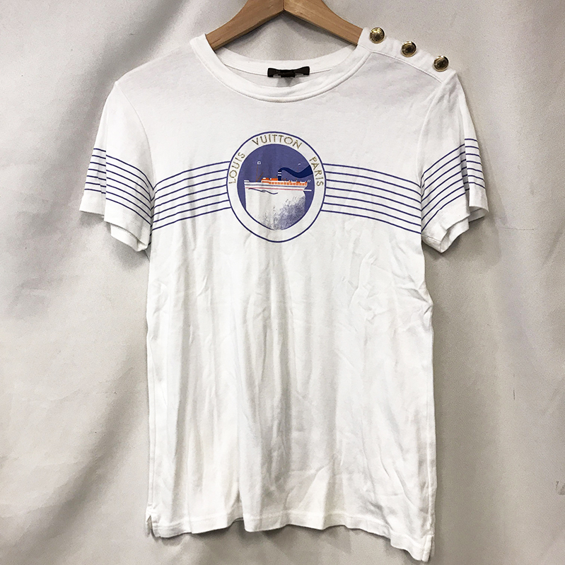 - qof.Y8T04 LOUIS VUITTON ルイ・ヴィトン 綿 100% Tシャツ ブランドロゴ 船舶柄 レディース XL