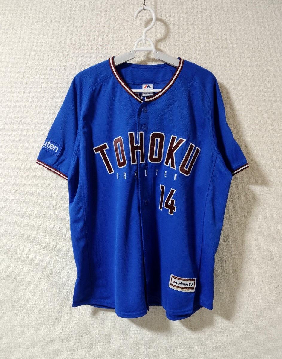 - 【新品タグ付】#14 東北楽天ゴールデンイーグルス 則本 昂大 ユニフォーム Lサイズ coolbase Majestic プロ野球 ブルー