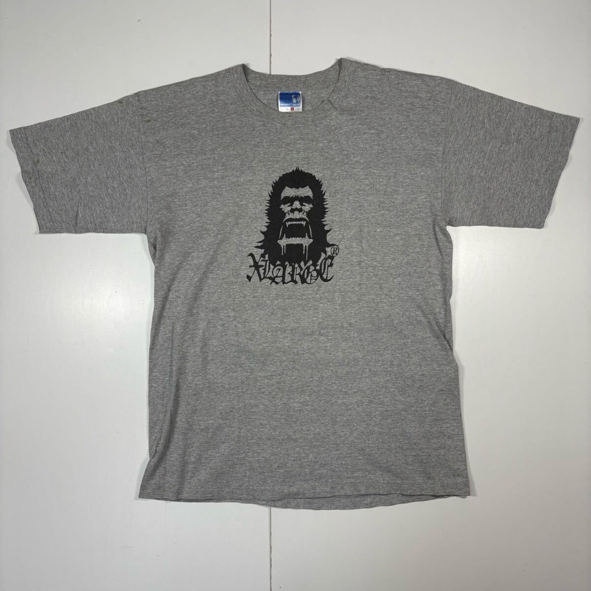 > 【L】90s OLD X-LARGE Gorilla Print Tee Gray 90年代 オールド エクストララージ ゴリラ プリント 半袖 Tシャツ ピエロタグ USA製 T1159