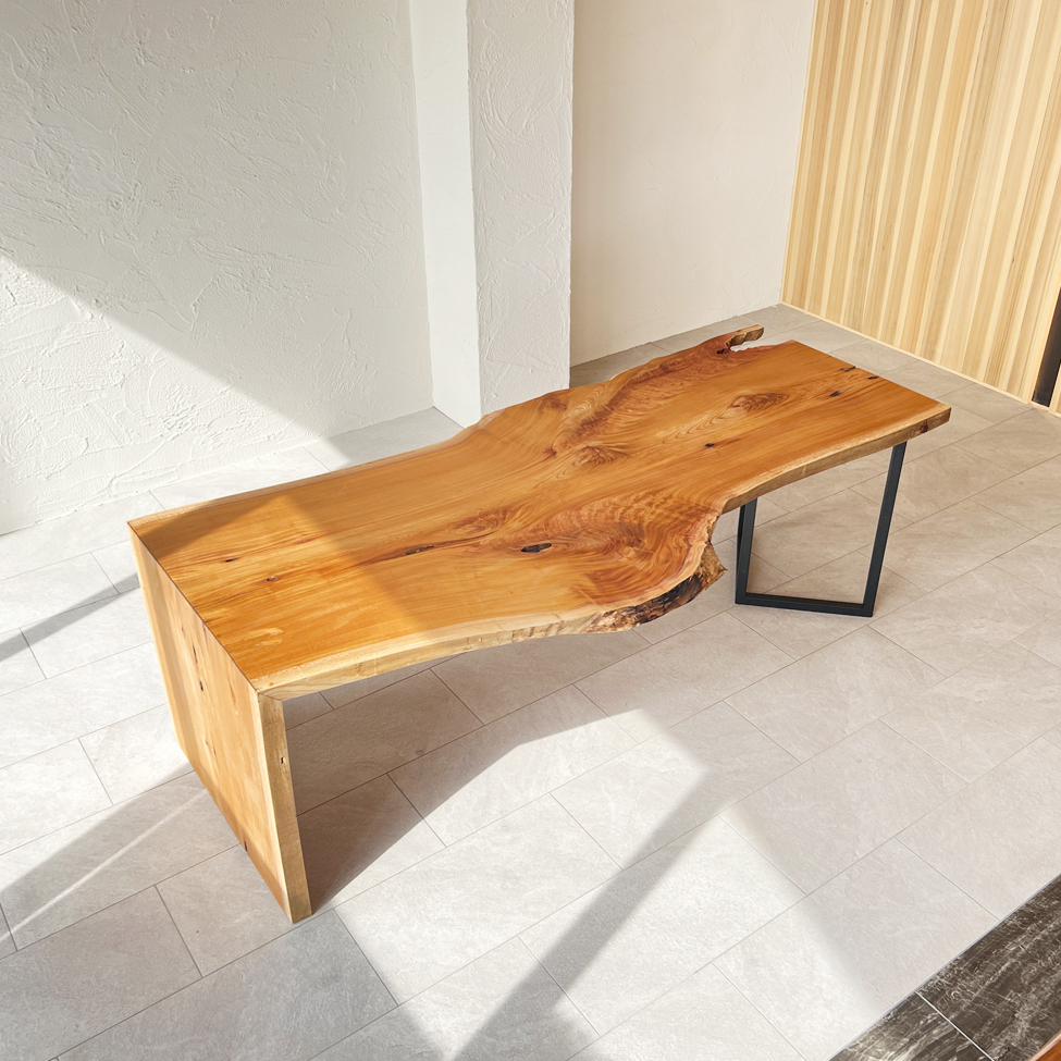 - ケヤキ L字型 ダイニングテーブル 一枚板 オイル塗装 天然木 2065mm×910mm×700mm 天板厚45mm 高品質