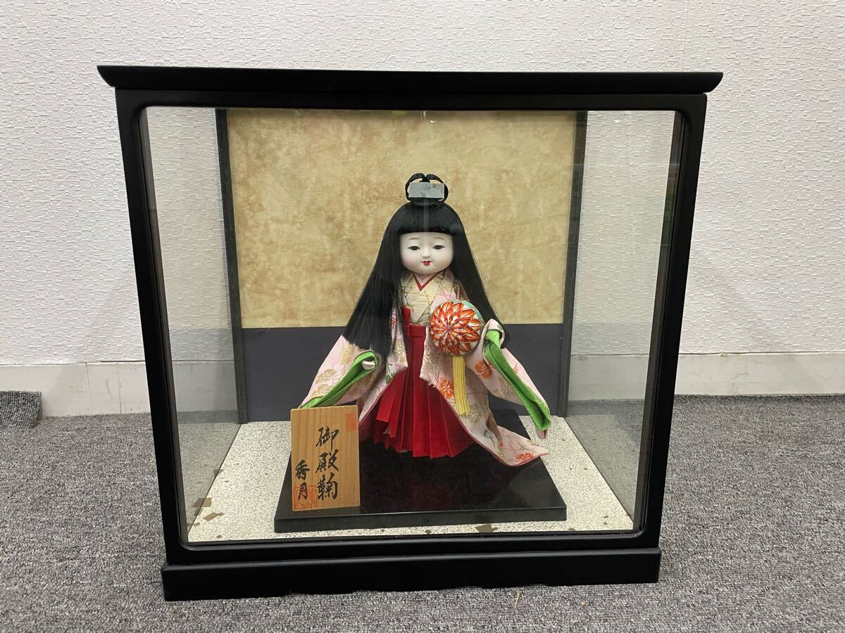 - 秀月 御殿鞠 日本人形 置物 ガラスケース付き