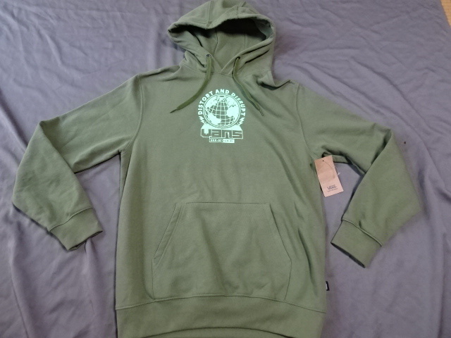 - USA購入 バンズ【VANS】【DISTORT AND DISRUPT SK8-HI-LO-FI】ロゴプリント入り 裏起毛タイプ プルオーバー パーカーUS Sサイズ グリーン