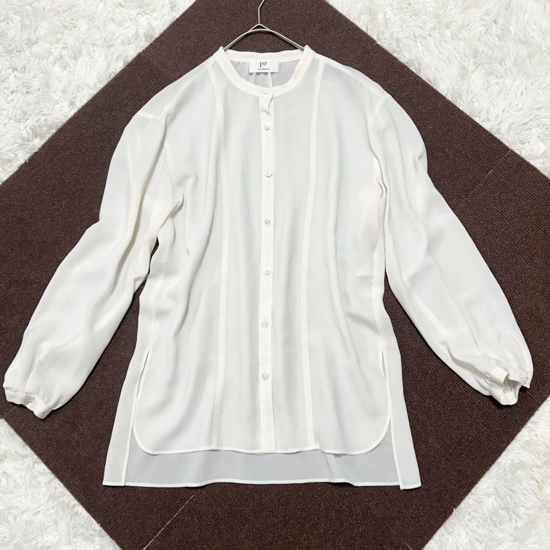 - 【美品 】 1er Arrondissement プルミエアロンディスモン ツイルジョーゼットシャツ シアー 白 ホワイト きれいめ S