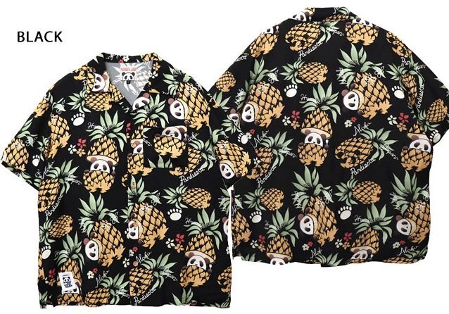 > パイナップルパンダアロハシャツ◆PANDIESTA JAPAN ブラック XXLサイズ 585205 パンディエスタジャパン ハワイアン ユニセックス