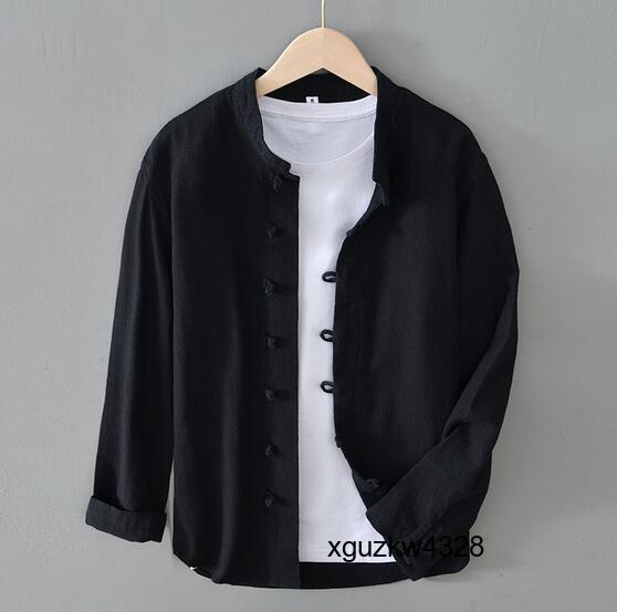 - 人気長袖シャツ メンズ リネンシャツ 無地 立ち襟 レトロ カーディガン 春夏 綿麻 個性 薄手 ジャケット カジュアル M~3XL 黒 多色/XS283