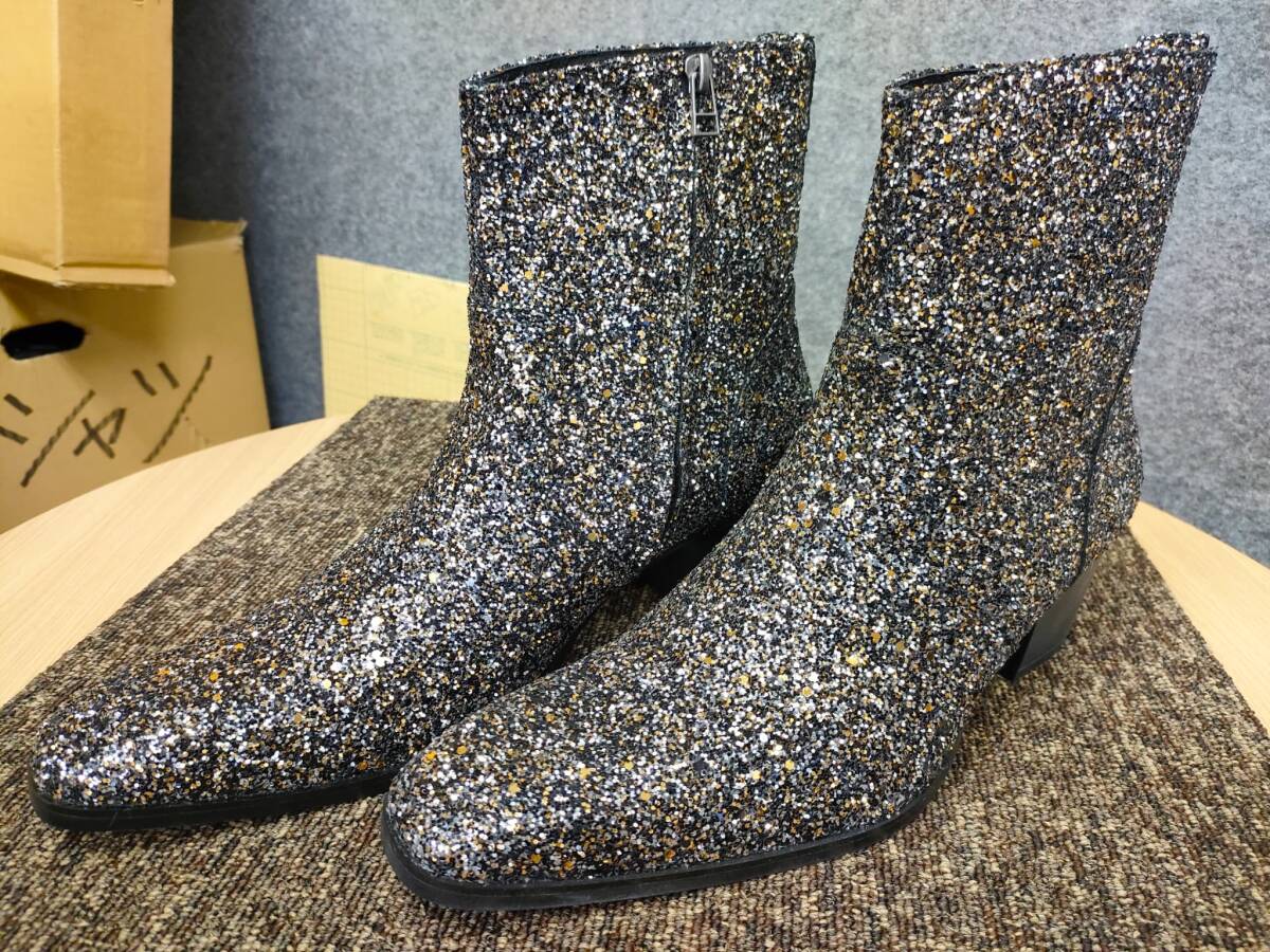 > ★OSSTONE オストーン ドレスブーツ グリッター チャッカブーツ メンズ サイドジップ sizeUS9.5