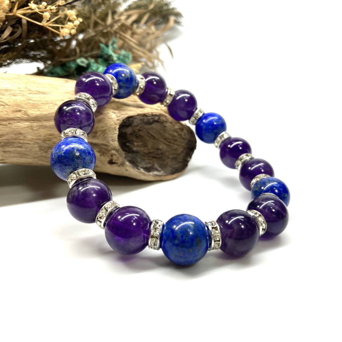 > ラピスラズリ&アメジスト パワーストーン ブレスレット 天然石ブレス (シルバー) 12mm メンズ・レディース 男性 女性 幸運 邪気を払い