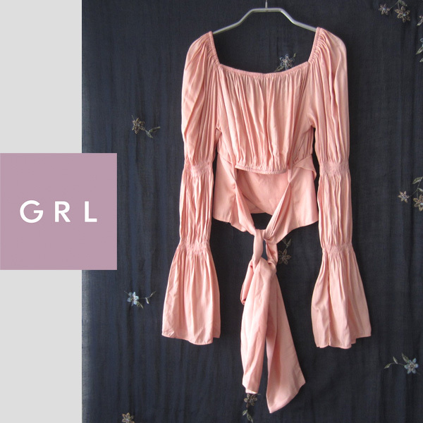 - 美品 GRL/グレイル★ リボン プリーツ ショート丈 長袖ブラウス M