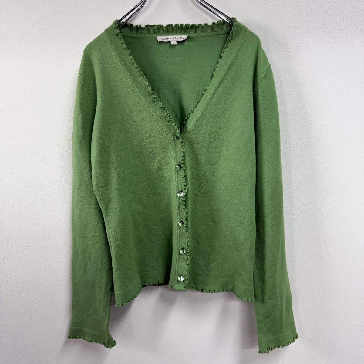 - ♪ ローラアシュレイ LAURAASHLEY カーディガン ニット イエローグリーン Sサイズ フリル 黄緑 長袖 薄手